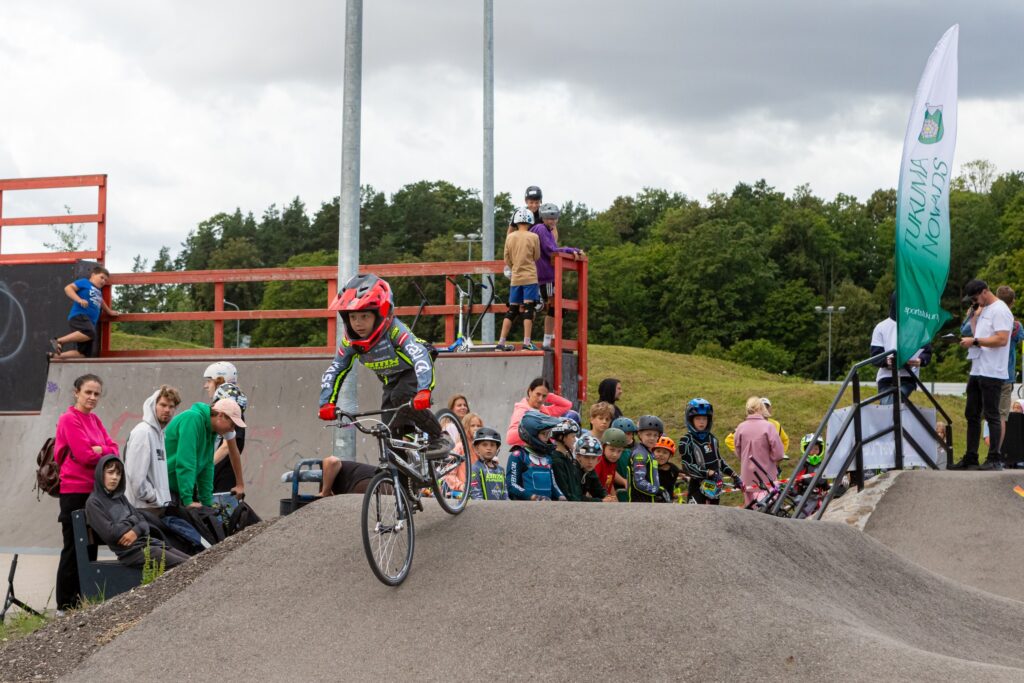 Pagājušajā sestdienā, 10. augustā, Tukumā notika aizraujošas “pump track” sacensības, kurās piedalījās gandrīz 70 jaunieši visdažādākajā vecumā. Dalībnieki ar lielu aizrautību demonstrēja savas prasmes, pump track trasē startējot ar skrejriteņiem un BMX velosipēdiem.