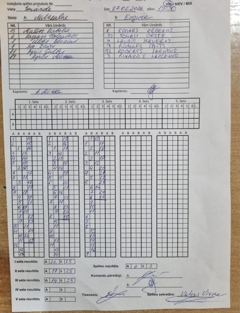 Milzkalne – Engure 0:3 (22:25; 17:25; 14:25)
