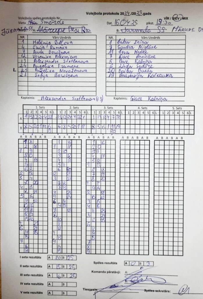 Mārupe Desk Pro – Jūrmalas Sporta skola 3:0 (25:20; 25:15; 25:16). Sērijā 1:0!