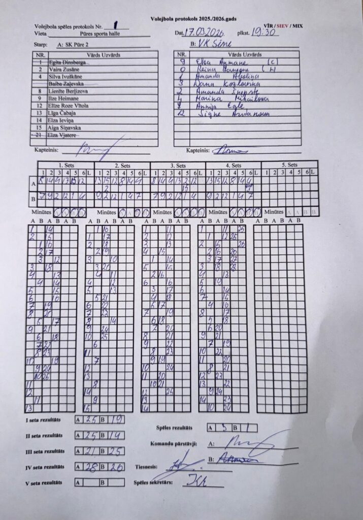 SK Pūre 2 – Sēme 3:1 (25:19; 25:14; 21:25; 28:26). Sērijā 1:0!