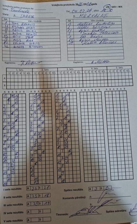 Šodienas spēlē īsti līdzvērtīga cīņa neizdevās, jo visos trīs setos vadībā izvirzījās Smārdes komanda, spējot noturēt uzvaru gan setos, gan spēlē kopumā!