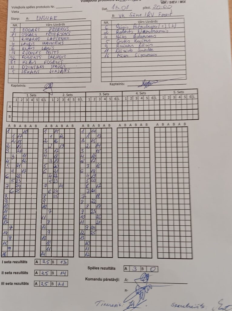Šovakar mājinieki bija noskaņojušies spēlei mazliet labāk nekā viesi, pirmajos divos setos izcīnot pārliecinošas uzvaras, bet trešajā Sēmes komanda “aizķērās” spēlē, turoties līdzās mājiniekiem, tomēr seta galotnē un spēlē uzvara Engurei!