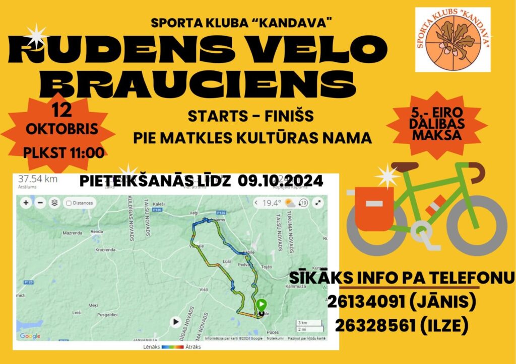 Ikgadējais Biedrība Sporta Klubs Kandava rudens velobrauciens. 37km starts un finišs pie Matkules kultūras nama.