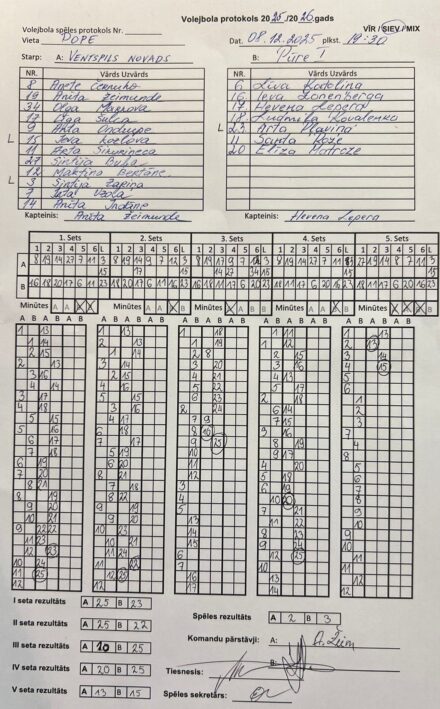 Ventspils novads – SK Pūre 1 2:3 (25:23; 25:22; 10:25; 20:25; 13:15)