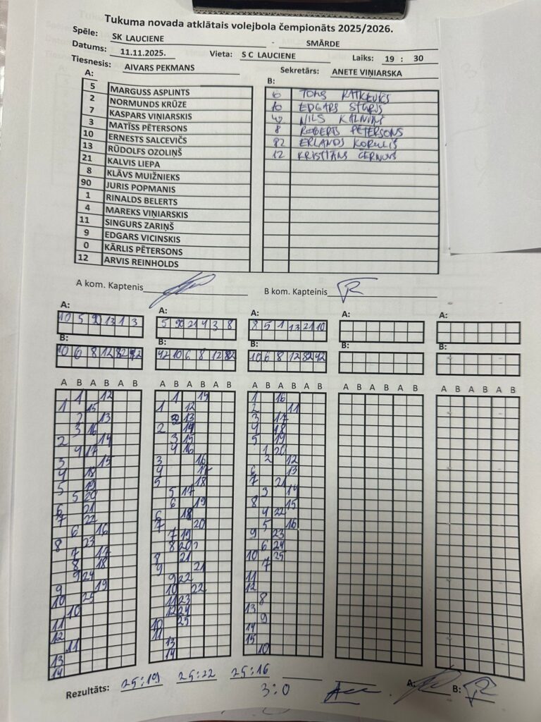 SK Lauciene – Smārde 3:0 (25:19; 25:22; 25:16)