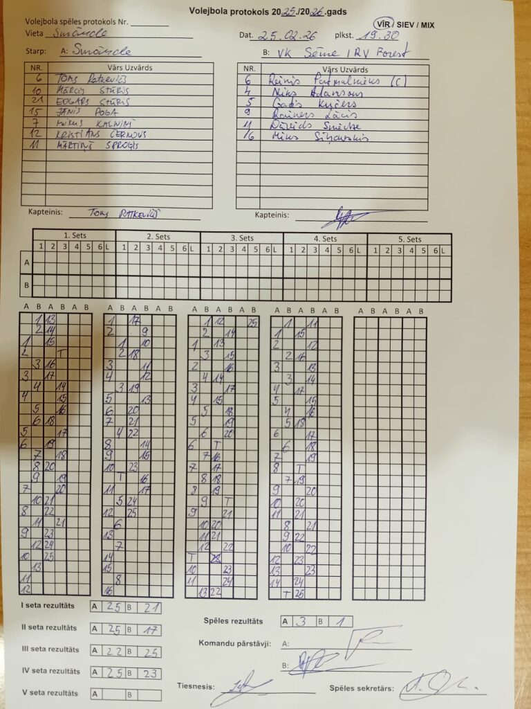 Smārde – VK Sēme/RV Forest 3:1 (25:21; 25:17; 22:25; 25:23)