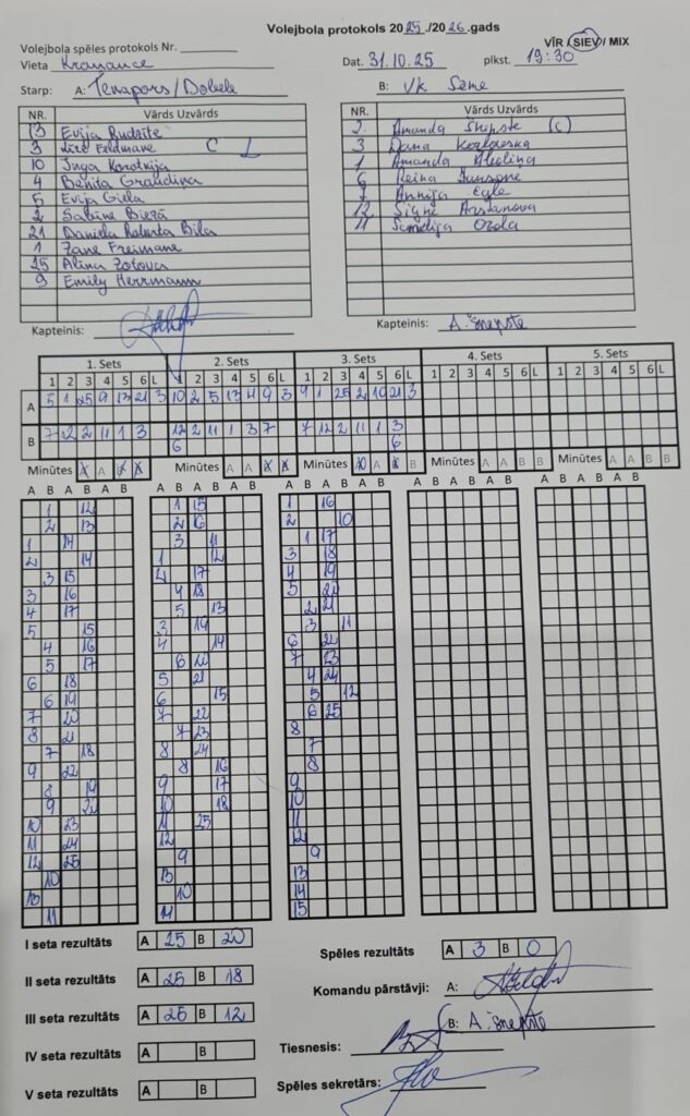 Šodien spēles pirmais sets gana līdzīgs abām komandām, kur seta galotnē uzvara mājiniecēm, bet tālākajos divos setos jau lielāka Tenapors Dobele komandas dominance.