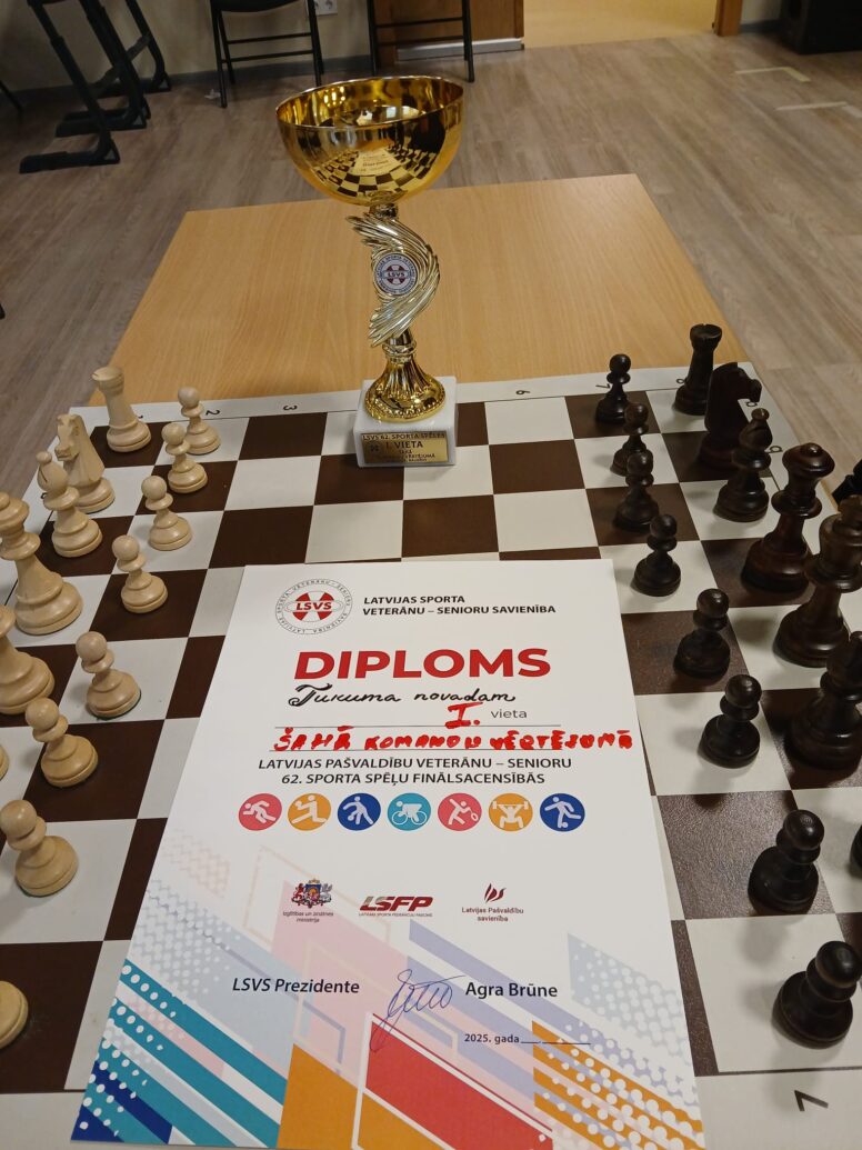 Šodien 18.maijā Baložos notika Latvijas sporta veterānu savienības 62. finālsacensības šahā. Tukuma novada komandā startēja Uldis Stirna, Māris Zvaunis, Jānis Visockis, Mārtiņš Liepiņš un Agnese Līdzkrastiņa. Komandu vērtējumā Tukuma novada komanda izcīnīja 1.vietu. Otrajā vietā Ŕīga, bet trešā Siguldas komanda. Individuālii J.Visockis izcīnīja pirmovietu, M.Liepiņš trešo vietu 80+ grupā. A.Līckrastiņa otro vietu 50+ dāmu grupā. U.Stirna 4.vietu 50+ grupā un M.Zvaunis 11.vietu 70+ grupā.