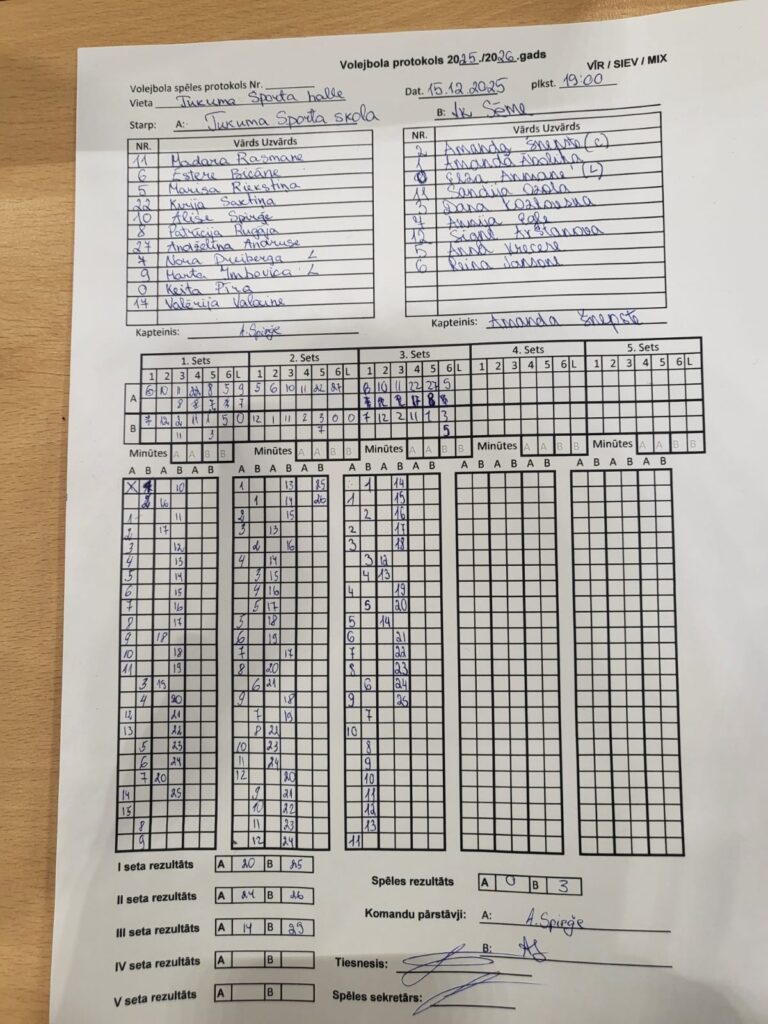 Tukuma sporta skola – Sēme 0:3 (20:25; 24:26; 14:25)