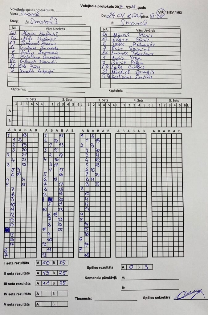 Smārde 2 – Smārde 0:3 (10:25; 19:25; 11:25)