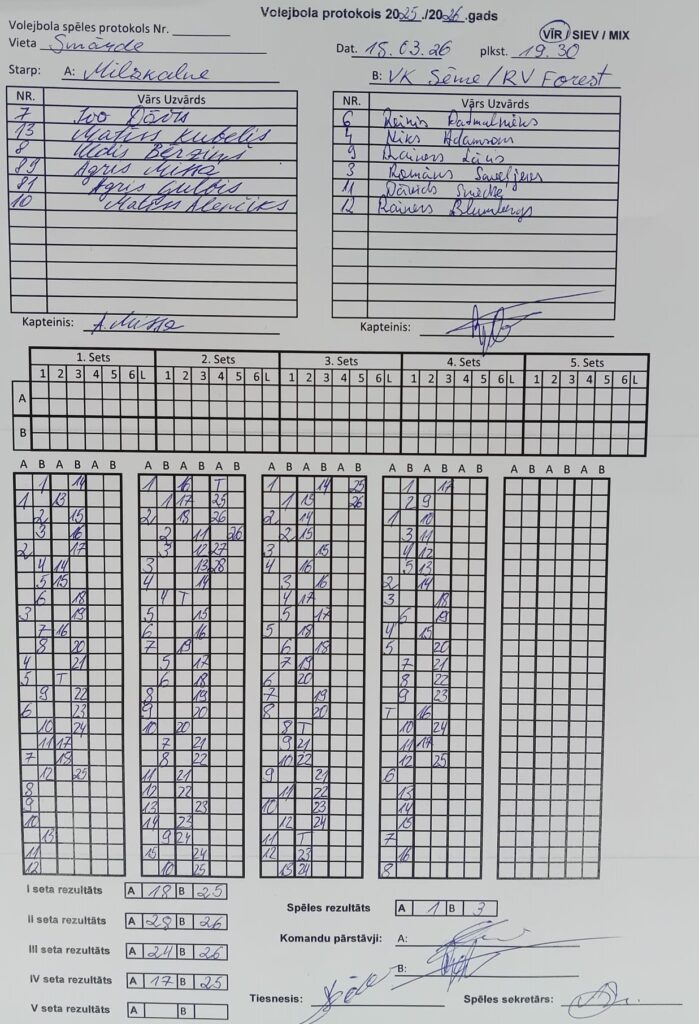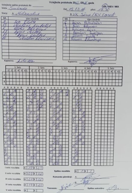 Trešdienas vakarā Smārdē izspēlēta vīriešu volejbola čempionāta regulārās sezonas spēle, kurā tikās Milzkalne un VK Sēme/RV Forest.